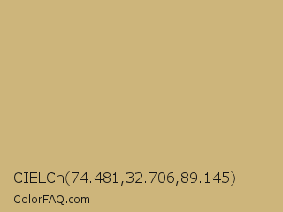 CIELCh 74.481,32.706,89.145 Color is a light orange color and the nearest color is Light French Beige #c8ad7f. Hex code #cdb57b and RGB value is rgb(205,181,123). In RGB color space, this color is composed of 80% red, 71% green, 48% blue, In CMYK color space, this color is composed of 0% cyan, 12% magenta, 40% yellow , 20% black , In HSL color space, this color has a hue angle of 42° , 45% saturation and 64% lightness.