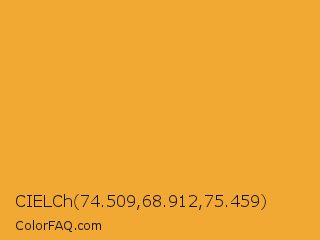 CIELCh 74.509,68.912,75.459 Color is a normal orange color and the nearest color is Fuel Yellow #eca927. Hex code #f2a934 and RGB value is rgb(242,169,52). In RGB color space, this color is composed of 95% red, 66% green, 20% blue, In CMYK color space, this color is composed of 0% cyan, 30% magenta, 79% yellow , 5% black , In HSL color space, this color has a hue angle of 37° , 88% saturation and 58% lightness.