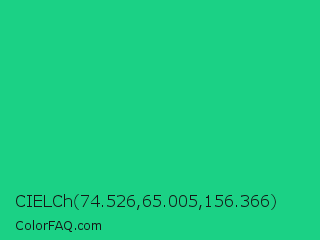CIELCh 74.526,65.005,156.366 Color is a normal green color and the nearest color is Mountain Meadow Crayola #1ab385. Hex code #1bd185 and RGB value is rgb(27,209,133). In RGB color space, this color is composed of 11% red, 82% green, 52% blue, In CMYK color space, this color is composed of 87% cyan, 0% magenta, 36% yellow , 18% black , In HSL color space, this color has a hue angle of 155° , 77% saturation and 46% lightness.