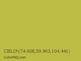 CIELCh 74.608,59.963,104.441 Color is a normal yellow color and the nearest color is Turmeric #cabb48. Hex code #bdbd46 and RGB value is rgb(189,189,70). In RGB color space, this color is composed of 74% red, 74% green, 27% blue, In CMYK color space, this color is composed of 0% cyan, 0% magenta, 63% yellow , 26% black , In HSL color space, this color has a hue angle of 60° , 47% saturation and 51% lightness.