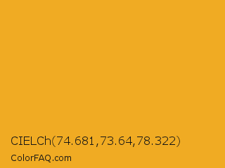 CIELCh 74.681,73.64,78.322 Color is a normal orange color and the nearest color is Fuel Yellow #eca927. Hex code #f0ab23 and RGB value is rgb(240,171,35). In RGB color space, this color is composed of 94% red, 67% green, 14% blue, In CMYK color space, this color is composed of 0% cyan, 29% magenta, 85% yellow , 6% black , In HSL color space, this color has a hue angle of 40° , 87% saturation and 54% lightness.