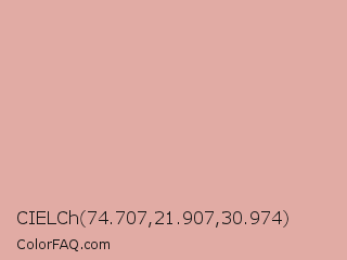 CIELCh 74.707,21.907,30.974 Color is a light red color and the nearest color is Pastel Pink #dea5a4. Hex code #e1aba4 and RGB value is rgb(225,171,164). In RGB color space, this color is composed of 88% red, 67% green, 64% blue, In CMYK color space, this color is composed of 0% cyan, 24% magenta, 27% yellow , 12% black , In HSL color space, this color has a hue angle of 7° , 50% saturation and 76% lightness.