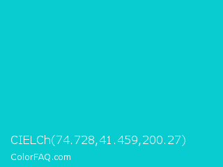 CIELCh 74.728,41.459,200.27 Color is a normal cyan color and the nearest color is Dark Turquoise #00ced1. Hex code #09ccd1 and RGB value is rgb(9,204,209). In RGB color space, this color is composed of 4% red, 80% green, 82% blue, In CMYK color space, this color is composed of 96% cyan, 2% magenta, 0% yellow , 18% black , In HSL color space, this color has a hue angle of 182° , 92% saturation and 43% lightness.