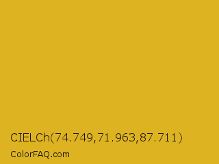 CIELCh 74.749,71.963,87.711 Color is a normal yellow color and the nearest color is Urobilin #e1ad21. Hex code #deb321 and RGB value is rgb(222,179,33). In RGB color space, this color is composed of 87% red, 70% green, 13% blue, In CMYK color space, this color is composed of 0% cyan, 19% magenta, 85% yellow , 13% black , In HSL color space, this color has a hue angle of 46° , 74% saturation and 50% lightness.