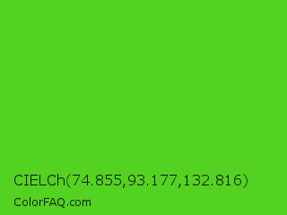 CIELCh 74.855,93.177,132.816 Color is a normal green color and the nearest color is Harlequin Green #46cb18. Hex code #53d222 and RGB value is rgb(83,210,34). In RGB color space, this color is composed of 33% red, 82% green, 13% blue, In CMYK color space, this color is composed of 60% cyan, 0% magenta, 84% yellow , 18% black , In HSL color space, this color has a hue angle of 103° , 72% saturation and 48% lightness.