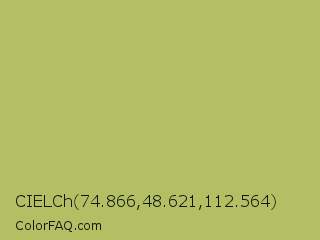CIELCh 74.866,48.621,112.564 Color is a normal yellow color and the nearest color is Middle Green Yellow #acbf60. Hex code #b2c063 and RGB value is rgb(178,192,99). In RGB color space, this color is composed of 70% red, 75% green, 39% blue, In CMYK color space, this color is composed of 7% cyan, 0% magenta, 48% yellow , 25% black , In HSL color space, this color has a hue angle of 69° , 42% saturation and 57% lightness.