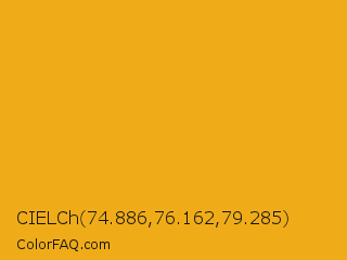 CIELCh 74.886,76.162,79.285 Color is a normal orange color and the nearest color is Buttercup #f3ad16. Hex code #f0ac18 and RGB value is rgb(240,172,24). In RGB color space, this color is composed of 94% red, 67% green, 9% blue, In CMYK color space, this color is composed of 0% cyan, 28% magenta, 90% yellow , 6% black , In HSL color space, this color has a hue angle of 41° , 88% saturation and 52% lightness.