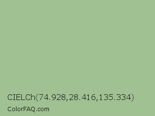 CIELCh 74.928,28.416,135.334 Color is a light green color and the nearest color is Norway #a8bd9f. Hex code #a0c293 and RGB value is rgb(160,194,147). In RGB color space, this color is composed of 63% red, 76% green, 58% blue, In CMYK color space, this color is composed of 18% cyan, 0% magenta, 24% yellow , 24% black , In HSL color space, this color has a hue angle of 103° , 28% saturation and 67% lightness.