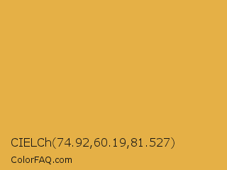 CIELCh 74.92,60.19,81.527 Color is a normal orange color and the nearest color is Anzac #e0b646. Hex code #e5b046 and RGB value is rgb(229,176,70). In RGB color space, this color is composed of 90% red, 69% green, 27% blue, In CMYK color space, this color is composed of 0% cyan, 23% magenta, 69% yellow , 10% black , In HSL color space, this color has a hue angle of 40° , 75% saturation and 59% lightness.