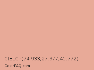CIELCh 74.933,27.377,41.772 Color is a light red color and the nearest color is Tonys Pink #e79f8c. Hex code #e8aa98 and RGB value is rgb(232,170,152). In RGB color space, this color is composed of 91% red, 67% green, 60% blue, In CMYK color space, this color is composed of 0% cyan, 27% magenta, 34% yellow , 9% black , In HSL color space, this color has a hue angle of 14° , 63% saturation and 75% lightness.