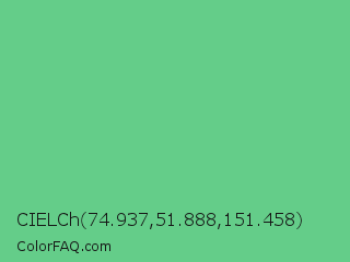 CIELCh 74.937,51.888,151.458 Color is a normal green color and the nearest color is De York #7ac488. Hex code #64cd89 and RGB value is rgb(100,205,137). In RGB color space, this color is composed of 39% red, 80% green, 54% blue, In CMYK color space, this color is composed of 51% cyan, 0% magenta, 33% yellow , 20% black , In HSL color space, this color has a hue angle of 141° , 51% saturation and 60% lightness.