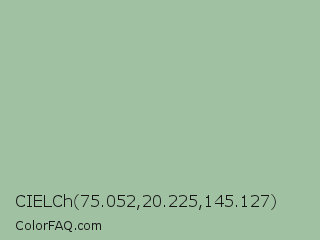 CIELCh 75.052,20.225,145.127 Color is a light green color and the nearest color is Norway #a8bd9f. Hex code #a1c1a3 and RGB value is rgb(161,193,163). In RGB color space, this color is composed of 63% red, 76% green, 64% blue, In CMYK color space, this color is composed of 17% cyan, 0% magenta, 16% yellow , 24% black , In HSL color space, this color has a hue angle of 124° , 21% saturation and 69% lightness.