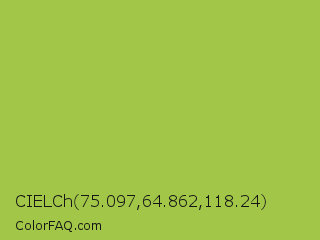 CIELCh 75.097,64.862,118.24 Color is a normal lime color and the nearest color is Android Green #a4c639. Hex code #a1c648 and RGB value is rgb(161,198,72). In RGB color space, this color is composed of 63% red, 78% green, 28% blue, In CMYK color space, this color is composed of 19% cyan, 0% magenta, 64% yellow , 22% black , In HSL color space, this color has a hue angle of 78° , 53% saturation and 53% lightness.