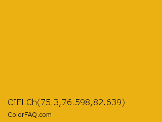 CIELCh 75.3,76.598,82.639 Color is a normal orange color and the nearest color is Buttercup #f3ad16. Hex code #ebb012 and RGB value is rgb(235,176,18). In RGB color space, this color is composed of 92% red, 69% green, 7% blue, In CMYK color space, this color is composed of 0% cyan, 25% magenta, 92% yellow , 8% black , In HSL color space, this color has a hue angle of 44° , 86% saturation and 50% lightness.