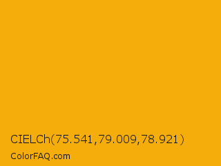 CIELCh 75.541,79.009,78.921 Color is a normal orange color and the nearest color is Sun #fbac13. Hex code #f4ad0b and RGB value is rgb(244,173,11). In RGB color space, this color is composed of 96% red, 68% green, 4% blue, In CMYK color space, this color is composed of 0% cyan, 29% magenta, 95% yellow , 4% black , In HSL color space, this color has a hue angle of 42° , 91% saturation and 50% lightness.