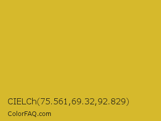 CIELCh 75.561,69.32,92.829 Color is a normal yellow color and the nearest color is Gold Metallic #d4af37. Hex code #d6b92c and RGB value is rgb(214,185,44). In RGB color space, this color is composed of 84% red, 73% green, 17% blue, In CMYK color space, this color is composed of 0% cyan, 14% magenta, 79% yellow , 16% black , In HSL color space, this color has a hue angle of 50° , 67% saturation and 51% lightness.