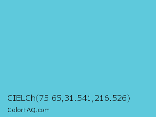 CIELCh 75.65,31.541,216.526 Color is a light cyan color and the nearest color is Viking #64ccdb. Hex code #5ec9dc and RGB value is rgb(94,201,220). In RGB color space, this color is composed of 37% red, 79% green, 86% blue, In CMYK color space, this color is composed of 57% cyan, 9% magenta, 0% yellow , 14% black , In HSL color space, this color has a hue angle of 189° , 64% saturation and 62% lightness.