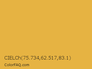 CIELCh 75.734,62.517,83.1 Color is a normal orange color and the nearest color is Anzac #e0b646. Hex code #e6b342 and RGB value is rgb(230,179,66). In RGB color space, this color is composed of 90% red, 70% green, 26% blue, In CMYK color space, this color is composed of 0% cyan, 22% magenta, 71% yellow , 10% black , In HSL color space, this color has a hue angle of 41° , 77% saturation and 58% lightness.