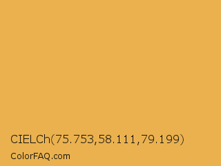 CIELCh 75.753,58.111,79.199 Color is a light orange color and the nearest color is Sunray #e3ab57. Hex code #eab14e and RGB value is rgb(234,177,78). In RGB color space, this color is composed of 92% red, 69% green, 31% blue, In CMYK color space, this color is composed of 0% cyan, 24% magenta, 67% yellow , 8% black , In HSL color space, this color has a hue angle of 38° , 79% saturation and 61% lightness.
