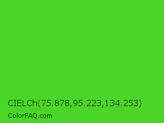 CIELCh 75.878,95.223,134.253 Color is a normal green color and the nearest color is Harlequin Green #46cb18. Hex code #4ad626 and RGB value is rgb(74,214,38). In RGB color space, this color is composed of 29% red, 84% green, 15% blue, In CMYK color space, this color is composed of 65% cyan, 0% magenta, 82% yellow , 16% black , In HSL color space, this color has a hue angle of 108° , 70% saturation and 49% lightness.