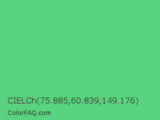 CIELCh 75.885,60.839,149.176 Color is a normal green color and the nearest color is Emerald #50c878. Hex code #58d27f and RGB value is rgb(88,210,127). In RGB color space, this color is composed of 35% red, 82% green, 50% blue, In CMYK color space, this color is composed of 58% cyan, 0% magenta, 40% yellow , 18% black , In HSL color space, this color has a hue angle of 139° , 58% saturation and 58% lightness.