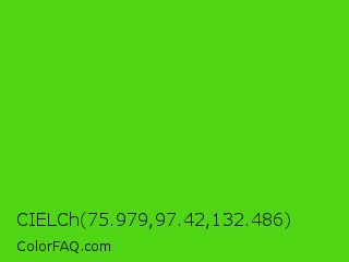CIELCh 75.979,97.42,132.486 Color is a normal green color and the nearest color is Harlequin Green #46cb18. Hex code #50d615 and RGB value is rgb(80,214,21). In RGB color space, this color is composed of 31% red, 84% green, 8% blue, In CMYK color space, this color is composed of 63% cyan, 0% magenta, 90% yellow , 16% black , In HSL color space, this color has a hue angle of 102° , 82% saturation and 46% lightness.