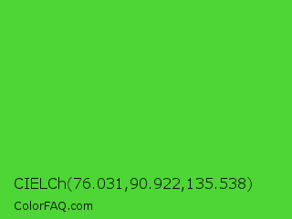 CIELCh 76.031,90.922,135.538 Color is a normal green color and the nearest color is Lime Green #32cd32. Hex code #4dd636 and RGB value is rgb(77,214,54). In RGB color space, this color is composed of 30% red, 84% green, 21% blue, In CMYK color space, this color is composed of 64% cyan, 0% magenta, 75% yellow , 16% black , In HSL color space, this color has a hue angle of 111° , 66% saturation and 53% lightness.
