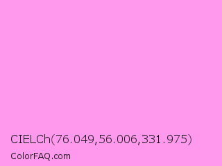 CIELCh 76.049,56.006,331.975 Color is a light magenta color and the nearest color is Lavender Rose #fba0e3. Hex code #fe99ed and RGB value is rgb(254,153,237). In RGB color space, this color is composed of 100% red, 60% green, 93% blue, In CMYK color space, this color is composed of 0% cyan, 40% magenta, 7% yellow , 0% black , In HSL color space, this color has a hue angle of 310° , 98% saturation and 80% lightness.