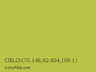 CIELCh 76.146,62.604,109.1 Color is a normal yellow color and the nearest color is Turmeric #cabb48. Hex code #b8c447 and RGB value is rgb(184,196,71). In RGB color space, this color is composed of 72% red, 77% green, 28% blue, In CMYK color space, this color is composed of 6% cyan, 0% magenta, 64% yellow , 23% black , In HSL color space, this color has a hue angle of 66° , 51% saturation and 52% lightness.