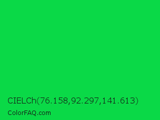 CIELCh 76.158,92.297,141.613 Color is a normal green color and the nearest color is Malachite #0bda51. Hex code #0ad947 and RGB value is rgb(10,217,71). In RGB color space, this color is composed of 4% red, 85% green, 28% blue, In CMYK color space, this color is composed of 95% cyan, 0% magenta, 67% yellow , 15% black , In HSL color space, this color has a hue angle of 138° , 91% saturation and 45% lightness.
