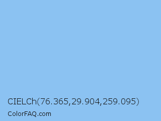 CIELCh 76.365,29.904,259.095 Color is a light blue color and the nearest color is Jordy Blue #8ab9f1. Hex code #8bc2f2 and RGB value is rgb(139,194,242). In RGB color space, this color is composed of 55% red, 76% green, 95% blue, In CMYK color space, this color is composed of 43% cyan, 20% magenta, 0% yellow , 5% black , In HSL color space, this color has a hue angle of 208° , 80% saturation and 75% lightness.