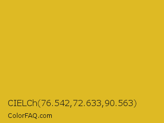 CIELCh 76.542,72.633,90.563 Color is a normal yellow color and the nearest color is Urobilin #e1ad21. Hex code #deba24 and RGB value is rgb(222,186,36). In RGB color space, this color is composed of 87% red, 73% green, 14% blue, In CMYK color space, this color is composed of 0% cyan, 16% magenta, 84% yellow , 13% black , In HSL color space, this color has a hue angle of 48° , 74% saturation and 51% lightness.