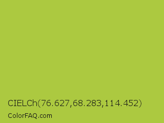 CIELCh 76.627,68.283,114.452 Color is a normal lime color and the nearest color is Android Green #a4c639. Hex code #acc940 and RGB value is rgb(172,201,64). In RGB color space, this color is composed of 67% red, 79% green, 25% blue, In CMYK color space, this color is composed of 14% cyan, 0% magenta, 68% yellow , 21% black , In HSL color space, this color has a hue angle of 73° , 56% saturation and 52% lightness.