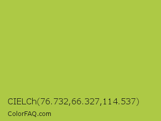 CIELCh 76.732,66.327,114.537 Color is a normal lime color and the nearest color is Android Green #a4c639. Hex code #adc945 and RGB value is rgb(173,201,69). In RGB color space, this color is composed of 68% red, 79% green, 27% blue, In CMYK color space, this color is composed of 14% cyan, 0% magenta, 66% yellow , 21% black , In HSL color space, this color has a hue angle of 73° , 55% saturation and 53% lightness.
