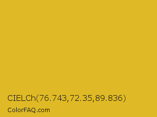 CIELCh 76.743,72.35,89.836 Color is a normal yellow color and the nearest color is Urobilin #e1ad21. Hex code #e0ba26 and RGB value is rgb(224,186,38). In RGB color space, this color is composed of 88% red, 73% green, 15% blue, In CMYK color space, this color is composed of 0% cyan, 17% magenta, 83% yellow , 12% black , In HSL color space, this color has a hue angle of 48° , 75% saturation and 51% lightness.