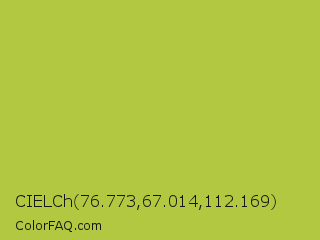 CIELCh 76.773,67.014,112.169 Color is a normal yellow color and the nearest color is Android Green #a4c639. Hex code #b2c841 and RGB value is rgb(178,200,65). In RGB color space, this color is composed of 70% red, 78% green, 25% blue, In CMYK color space, this color is composed of 11% cyan, 0% magenta, 68% yellow , 22% black , In HSL color space, this color has a hue angle of 70° , 55% saturation and 52% lightness.