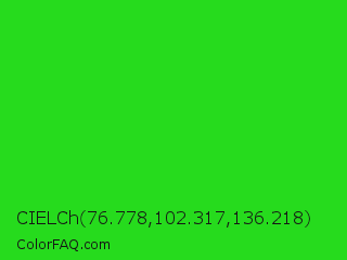 CIELCh 76.778,102.317,136.218 Color is a normal green color and the nearest color is Lime Green #32cd32. Hex code #26db1d and RGB value is rgb(38,219,29). In RGB color space, this color is composed of 15% red, 86% green, 11% blue, In CMYK color space, this color is composed of 83% cyan, 0% magenta, 87% yellow , 14% black , In HSL color space, this color has a hue angle of 117° , 77% saturation and 49% lightness.