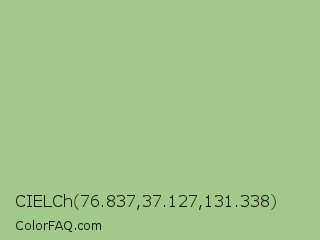 CIELCh 76.837,37.127,131.338 Color is a light green color and the nearest color is Feijoa #9fdd8c. Hex code #a2c989 and RGB value is rgb(162,201,137). In RGB color space, this color is composed of 64% red, 79% green, 54% blue, In CMYK color space, this color is composed of 19% cyan, 0% magenta, 32% yellow , 21% black , In HSL color space, this color has a hue angle of 97° , 37% saturation and 66% lightness.