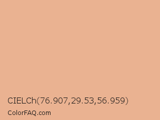 CIELCh 76.907,29.53,56.959 Color is a light orange color and the nearest color is Gold Sand #e6be8a. Hex code #eab291 and RGB value is rgb(234,178,145). In RGB color space, this color is composed of 92% red, 70% green, 57% blue, In CMYK color space, this color is composed of 0% cyan, 24% magenta, 38% yellow , 8% black , In HSL color space, this color has a hue angle of 22° , 68% saturation and 74% lightness.