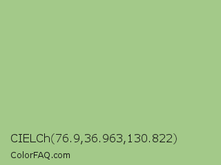 CIELCh 76.9,36.963,130.822 Color is a light green color and the nearest color is Feijoa #9fdd8c. Hex code #a3c989 and RGB value is rgb(163,201,137). In RGB color space, this color is composed of 64% red, 79% green, 54% blue, In CMYK color space, this color is composed of 19% cyan, 0% magenta, 32% yellow , 21% black , In HSL color space, this color has a hue angle of 96° , 37% saturation and 66% lightness.