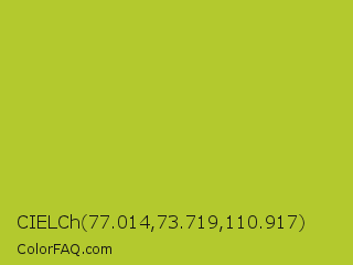 CIELCh 77.014,73.719,110.917 Color is a normal yellow color and the nearest color is Key Lime Pie #bfc921. Hex code #b3c92e and RGB value is rgb(179,201,46). In RGB color space, this color is composed of 70% red, 79% green, 18% blue, In CMYK color space, this color is composed of 11% cyan, 0% magenta, 77% yellow , 21% black , In HSL color space, this color has a hue angle of 69° , 63% saturation and 48% lightness.