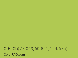 CIELCh 77.049,60.841,114.675 Color is a normal lime color and the nearest color is Celery #b8c25d. Hex code #b0c952 and RGB value is rgb(176,201,82). In RGB color space, this color is composed of 69% red, 79% green, 32% blue, In CMYK color space, this color is composed of 12% cyan, 0% magenta, 59% yellow , 21% black , In HSL color space, this color has a hue angle of 73° , 52% saturation and 55% lightness.
