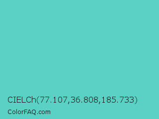 CIELCh 77.107,36.808,185.733 Color is a normal cyan color and the nearest color is Medium Turquoise #48d1cc. Hex code #59d1c4 and RGB value is rgb(89,209,196). In RGB color space, this color is composed of 35% red, 82% green, 77% blue, In CMYK color space, this color is composed of 57% cyan, 0% magenta, 6% yellow , 18% black , In HSL color space, this color has a hue angle of 174° , 57% saturation and 58% lightness.
