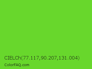 CIELCh 77.117,90.207,131.004 Color is a normal green color and the nearest color is Lima #76bd17. Hex code #68d72c and RGB value is rgb(104,215,44). In RGB color space, this color is composed of 41% red, 84% green, 17% blue, In CMYK color space, this color is composed of 52% cyan, 0% magenta, 80% yellow , 16% black , In HSL color space, this color has a hue angle of 99° , 68% saturation and 51% lightness.