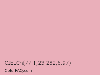 CIELCh 77.1,23.282,6.97 Color is a light red color and the nearest color is Shilo #e8b9b3. Hex code #eaafba and RGB value is rgb(234,175,186). In RGB color space, this color is composed of 92% red, 69% green, 73% blue, In CMYK color space, this color is composed of 0% cyan, 25% magenta, 21% yellow , 8% black , In HSL color space, this color has a hue angle of 349° , 58% saturation and 80% lightness.