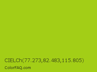 CIELCh 77.273,82.483,115.805 Color is a normal lime color and the nearest color is Bahia #a5cb0c. Hex code #a3ce16 and RGB value is rgb(163,206,22). In RGB color space, this color is composed of 64% red, 81% green, 9% blue, In CMYK color space, this color is composed of 21% cyan, 0% magenta, 89% yellow , 19% black , In HSL color space, this color has a hue angle of 74° , 81% saturation and 45% lightness.