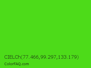 CIELCh 77.466,99.297,133.179 Color is a normal green color and the nearest color is Harlequin Green #46cb18. Hex code #4ddb19 and RGB value is rgb(77,219,25). In RGB color space, this color is composed of 30% red, 86% green, 10% blue, In CMYK color space, this color is composed of 65% cyan, 0% magenta, 89% yellow , 14% black , In HSL color space, this color has a hue angle of 104° , 80% saturation and 48% lightness.