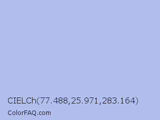 CIELCh 77.488,25.971,283.164 Color is a very light blue color and the nearest color is Perano #a9bef2. Hex code #b1beee and RGB value is rgb(177,190,238). In RGB color space, this color is composed of 69% red, 75% green, 93% blue, In CMYK color space, this color is composed of 26% cyan, 20% magenta, 0% yellow , 7% black , In HSL color space, this color has a hue angle of 227° , 64% saturation and 81% lightness.