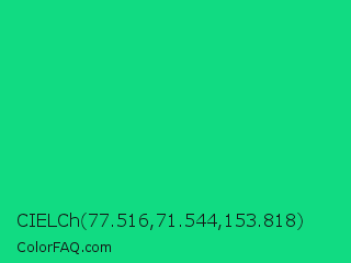 CIELCh 77.516,71.544,153.818 Color is a normal green color and the nearest color is Caribbean Green #00cc99. Hex code #11db82 and RGB value is rgb(17,219,130). In RGB color space, this color is composed of 7% red, 86% green, 51% blue, In CMYK color space, this color is composed of 92% cyan, 0% magenta, 41% yellow , 14% black , In HSL color space, this color has a hue angle of 154° , 86% saturation and 46% lightness.