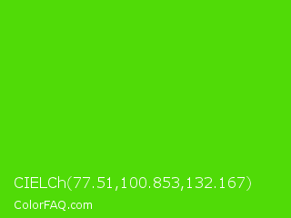 CIELCh 77.51,100.853,132.167 Color is a normal green color and the nearest color is Harlequin Green #46cb18. Hex code #50db07 and RGB value is rgb(80,219,7). In RGB color space, this color is composed of 31% red, 86% green, 3% blue, In CMYK color space, this color is composed of 63% cyan, 0% magenta, 97% yellow , 14% black , In HSL color space, this color has a hue angle of 99° , 94% saturation and 44% lightness.
